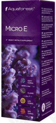 Aquaforest Micro E 10 мл - это высококонцентрированная добавка тяжелых металлов, специально разработанная для морских аквариумов с кораллами. В состав входит тщательно подобранный комплекс микроэлементов, необходимых для поддержания биологического баланса, роста и окраски кораллов. Препарат содержит такие элементы, как: марганец, ванадий, цинк, никель, железо, хром, кобальт и медь.
