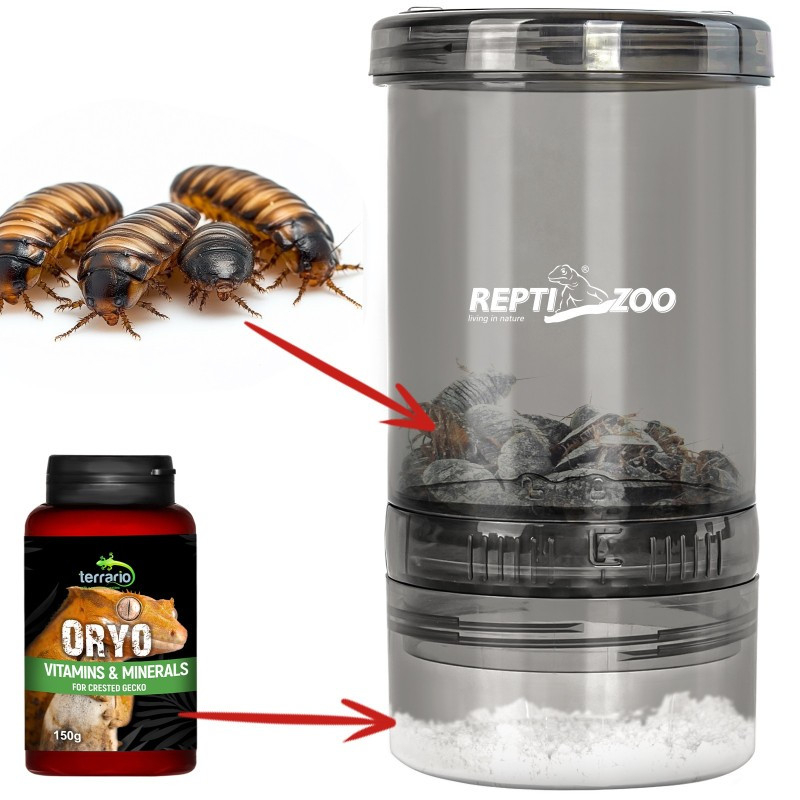 Этот шейкер предназначен для покрытия кормовых насекомых (например, сверчков, личинок мучного хруща, тараканов и т.д.) пищевыми добавками - кальцием, витаминами и другими порошкообразными препаратами. Такой метод кормления необходим для предотвращения дефицита минералов, что часто случается у террариумных животных, которые питаются живым кормом.